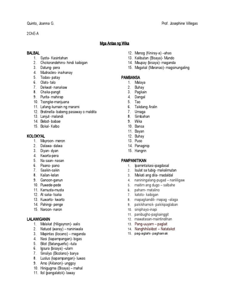 Muztah kamusta uxta- kamusta balo bago 4. Di- pormal balbal kolokyal lalawiganin 1. Aqckuh ako pgod pagod labi gabi 5.