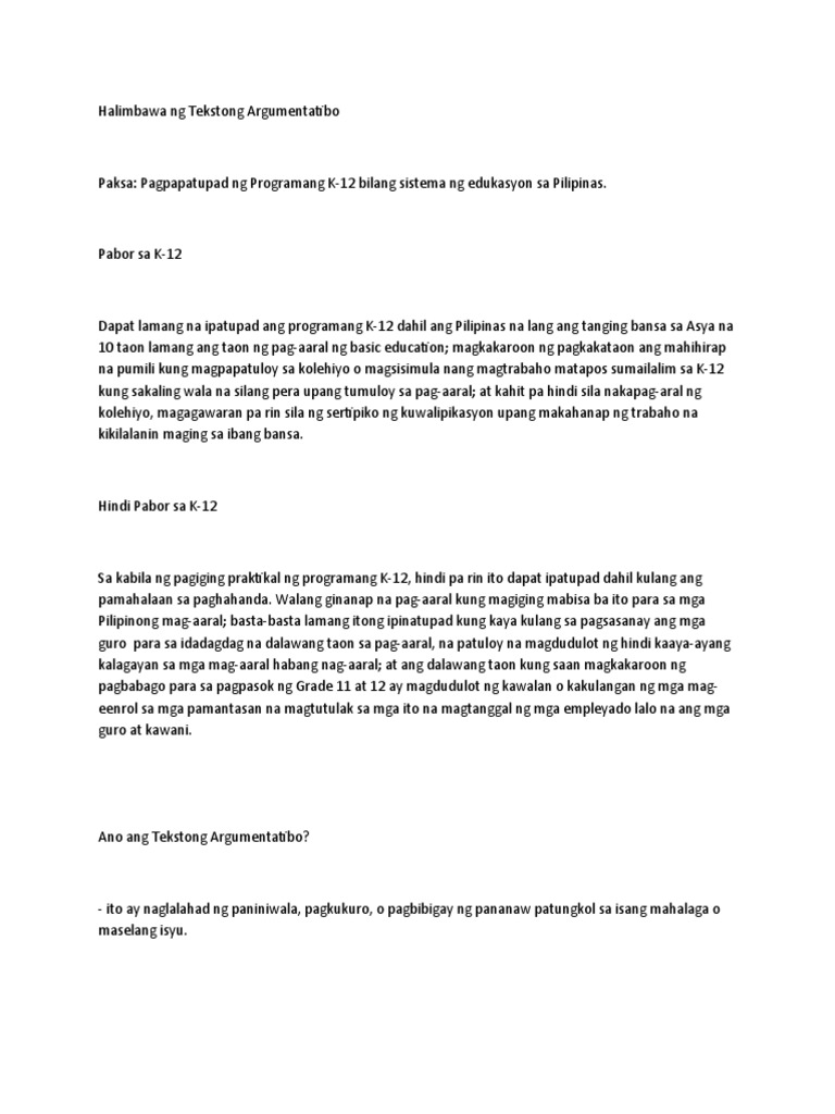 Halimbawa Ng Tekstong Argumentatibo