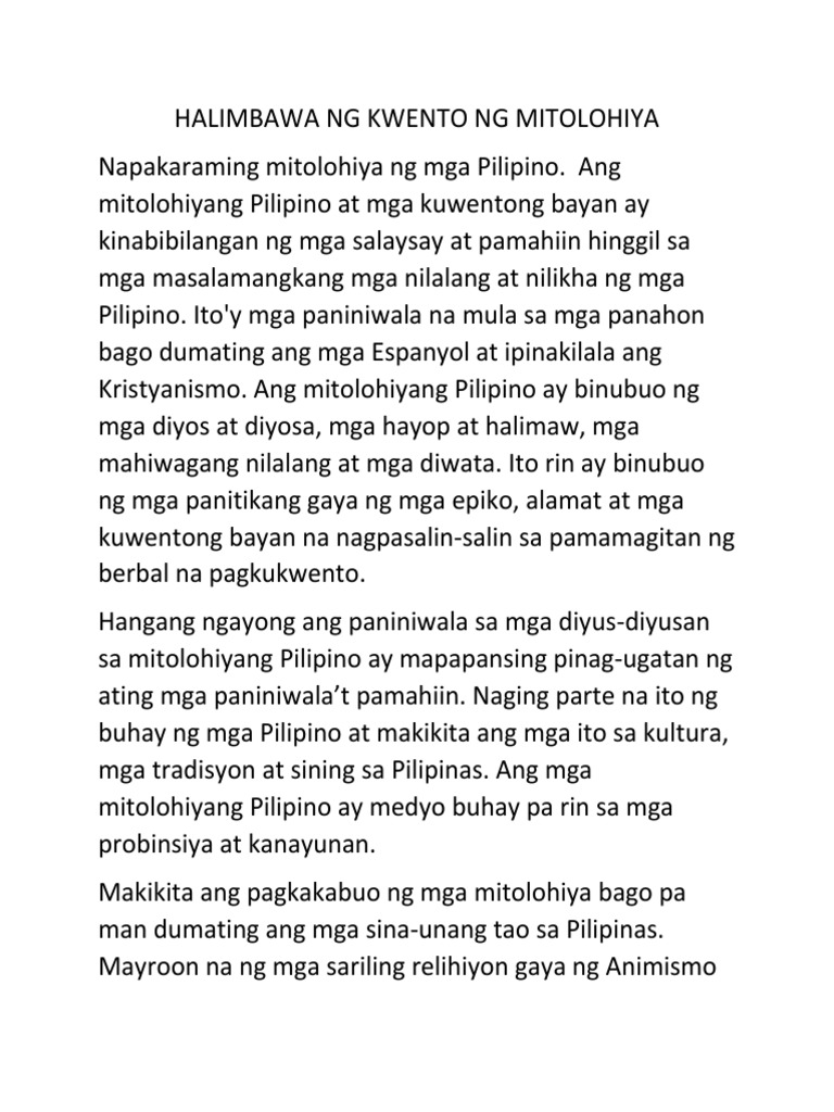 Ang mga susunod na mga kwento ay ilan lamang sa mga pinaka sikat na mito ng ating lupang sinilangan. Halimbawa ng mitolohiya sa pilipinas web webcrawler is within reach in our digital library an online right of entry to it is set as public appropriately you can download it instantly. Ang mga naka-lista sa itaas ay halimbawa ng mga Mitikal na nilalang.