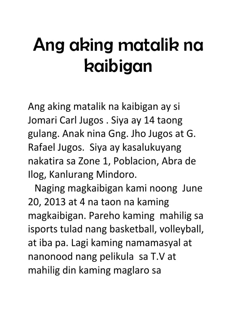 Premium 286 Words 2 Pages. Sana poy masiyahan kayo sa mga nakapaloob na mga pinapahayag ng damdamin ng mga artikulo dito. Ng kaibigan tungkol essay halimbawa kay.