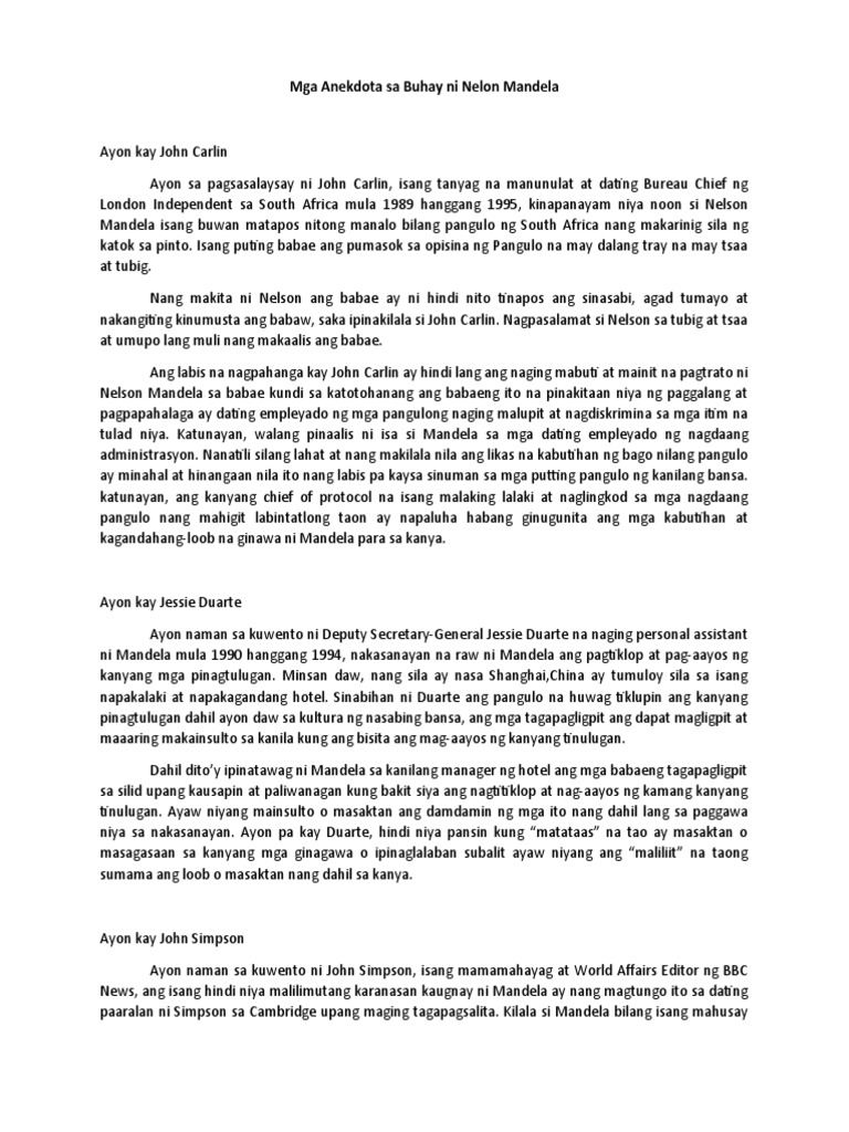 Mga Anekdota Sa Buhay Ni Nelon Mandela