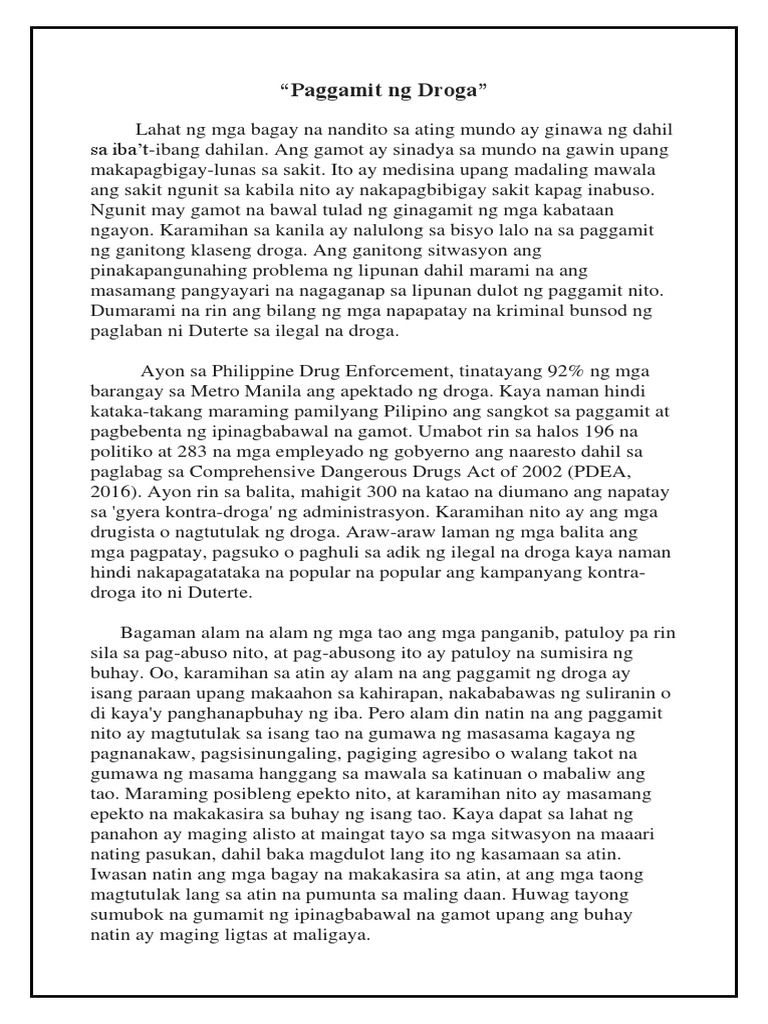 Posisyong Papel Paggamit Ng Droga