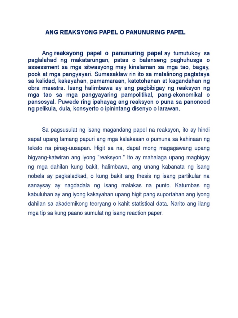 Ang Reaksyong Papel O Panunuring Papel Pdf