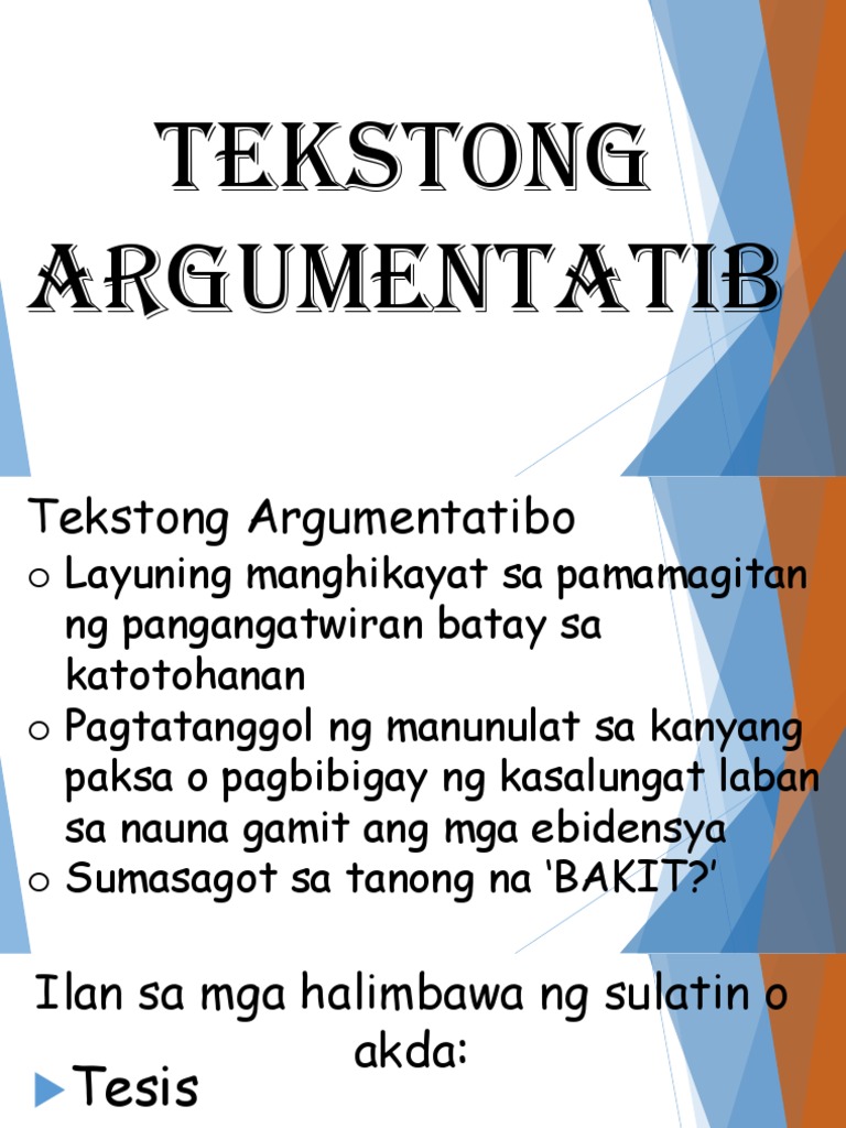 Ppt Tekstong Argumentatibo Ipaglaban Ang Katuwiran Ayessa. Kung hindi man huwag mong gawin kung ano iyong sariling kagustuhan huwag mong pangunahan ang Diyos sa Kaniyang plano sa iyong buhay at maging sa biyayang ipinagkaloob sa iyo. Ni Rin Hair sa 3242018.