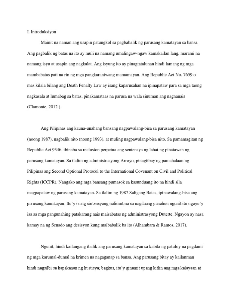 Sa madaling salita ay mas pinadali at mainam ang pagsagawa ng kanilang mga tungkulin. Isa ako sa mga naniniwala na makakatulong ang libreng matrikula sa mga estudyante na papasok at pumapasok kolehiyo upang makapagtapos ng pagaaral at makahanap ng magandang trabaho na siyang magaangat nito sa kahirapan gayun na din sa ating bansaAyon panga sa ating pangulo na si Duterte ang mga kabataan ang magiging daan sa. POSISYONG PAPEL PAGPAPATUPAD MULI NG DEATH PENALTY SA ATING BANSA Matagal na ang debate tungkol sa pagpapatupad ng Parusang kamatayan o Death Penalty hindi lamang sa ating bansa kundi sa buong mundoIto ang isyung pinagtatalunan hindi lamang ng mambabatas pati na mga pangkaraniwang mamamayan.