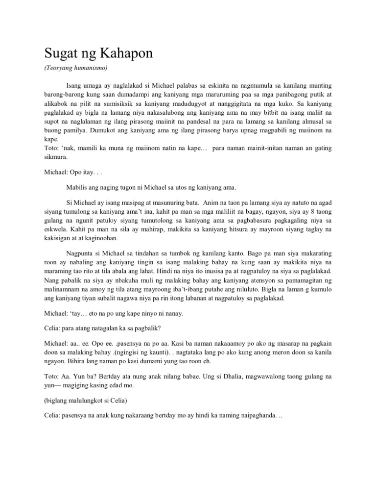 Ang pokus ng teoryang ito ay ang tao. Si Pinkaw maikling kwentong hiligaynon ni Isabelo S. HUMANISMO Sa paksang ito ating pag-aaralan kung ano nga ba ang kahulugan ng teoryang humanismo at ang mga halimbawa nito.