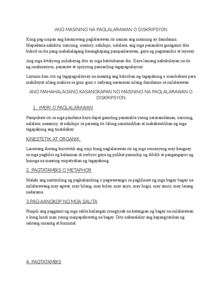 Halimbawa Ng Payak Na Paglalarawan Pdf